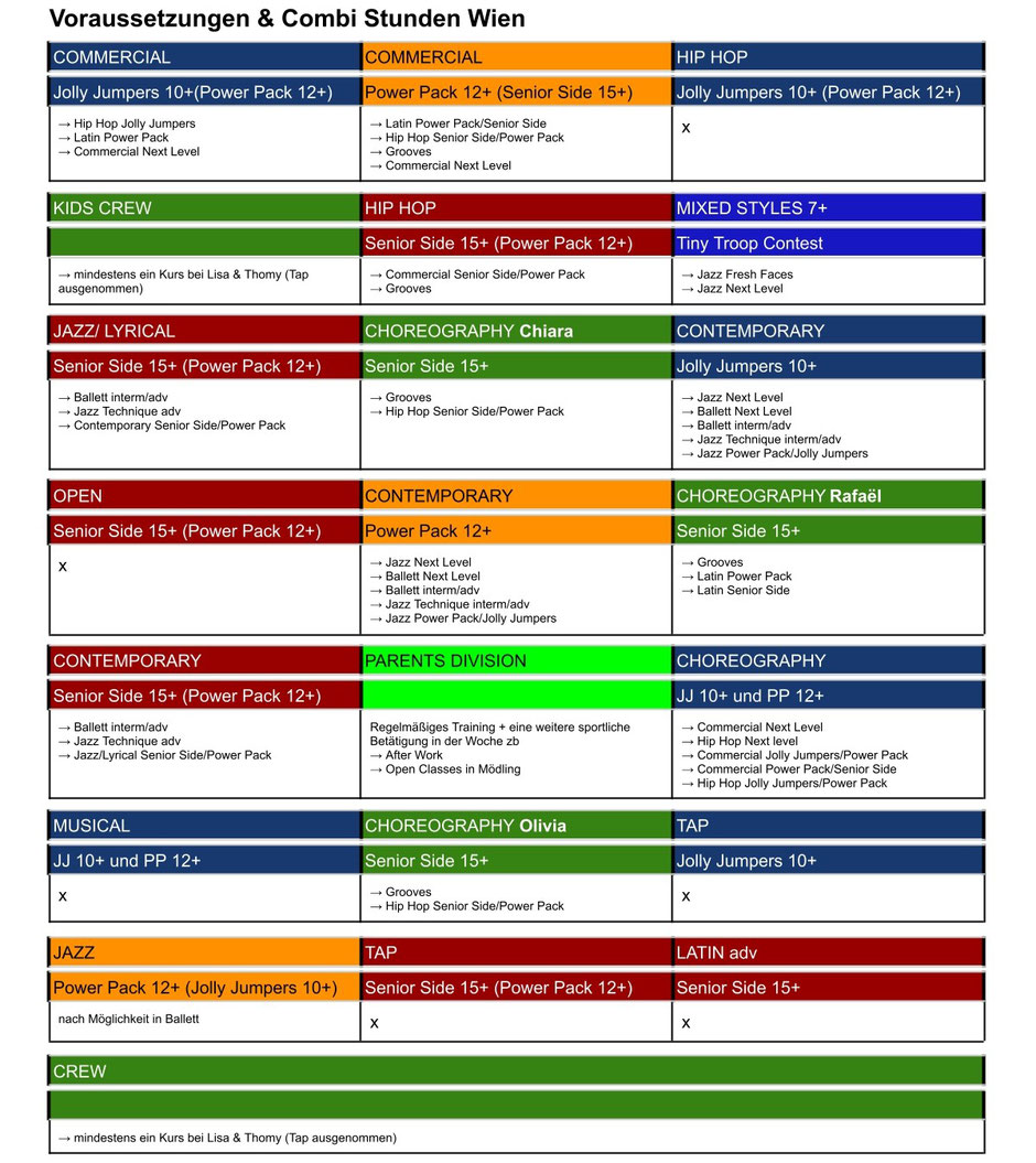 - Für ALLE Kadertänzer*innen gilt ein Minimum von 3 Classes an mindestens 2 Tagen (ausgenommen Parents Division)
