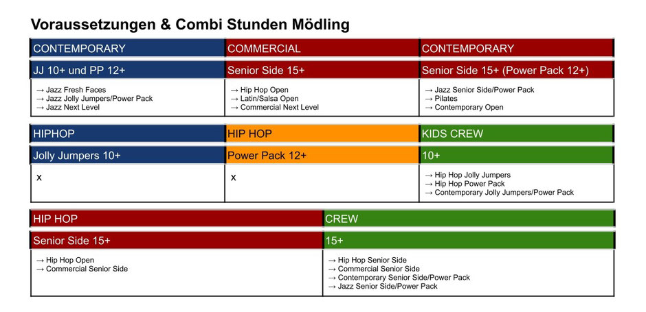 - Für die CREW und die KIDS CREW wird dieses Jahr erstmals eine Audition abgehalten werden. Sie findet in der ersten Trainingseinheit (in der ALL-YOU-CAN-DANCE Woche) statt und es muss dafür